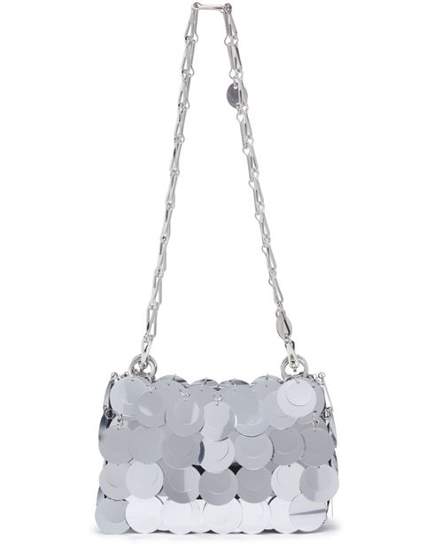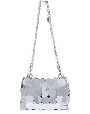 Le sac porté épaule Sparkle Nano de Paco Rabanne offre un toucher très doux et une bandoulière chaîne élégante. Son compartiment unique et son grand compartiment intérieur permettent d'organiser vos essentiels avec style. Parfait pour les sorties, il allie fonctionnalité et raffinement, faisant de chaque moment une occasion spéciale.