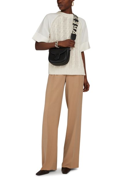 • Description : Bandoulière large, bandoulière aovible, coutures apparentes, fermeture à rabat, logo métallique à l'avant.