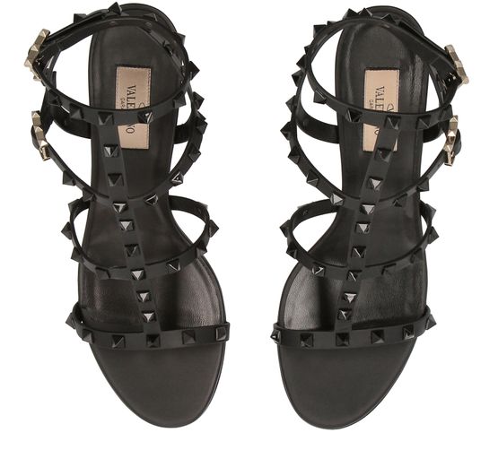 • Description : Bout rond ouvert, clous décoratifs Rockstud, bride cheville, brides à boucles, semelle intérieure à logo, talon bloc.