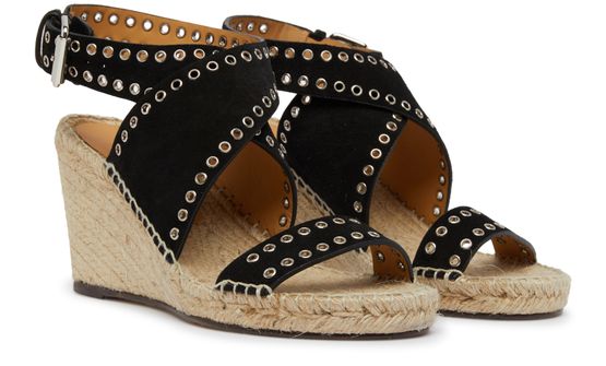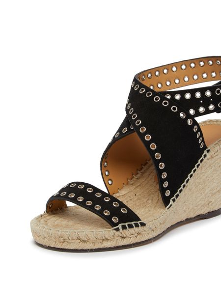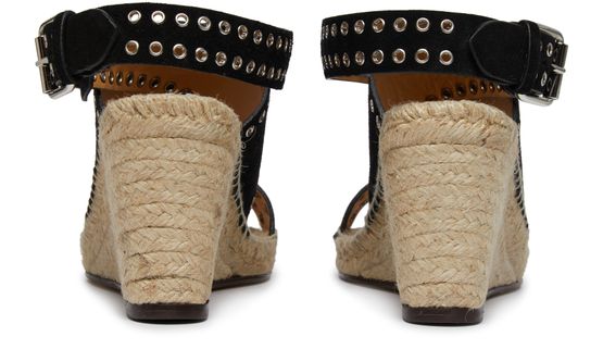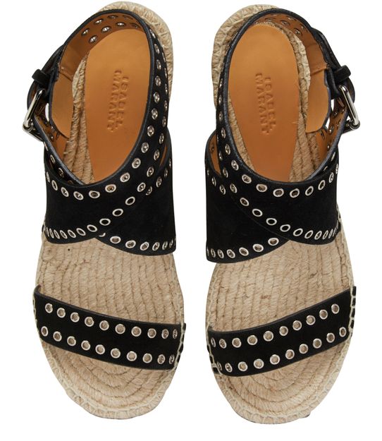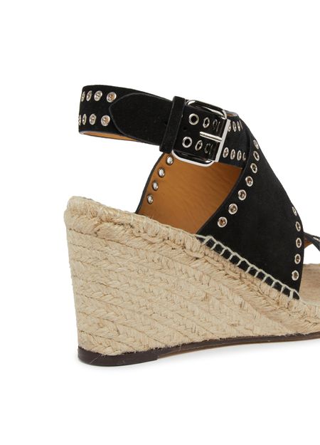 Les sandales Iriane d'Isabel Marant sont des mules à bout rond ouvert avec un talon compensé et des talons hauts. Elles ont une bride cheville à boucle, des détails de clous et des finitions argentées.