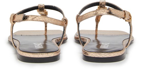 • Description : bout carré ouvert, talons plats, finitions dorées, bride cheville à boucle, logo métallique à l'avant, semelle intérieure à logo.