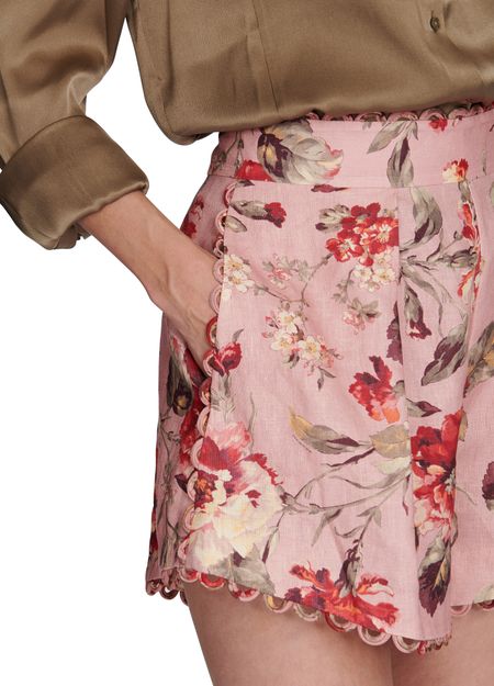 Description : Bordure festonnée, motif fleuri, imprimé multicolore, détails plissés sur le devant, porté taille haute.