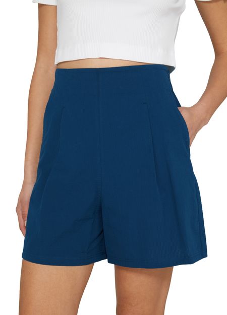 • Description : court, taille élastique, poches latérales, détails plissés sur le devant.