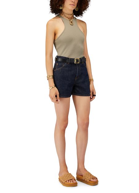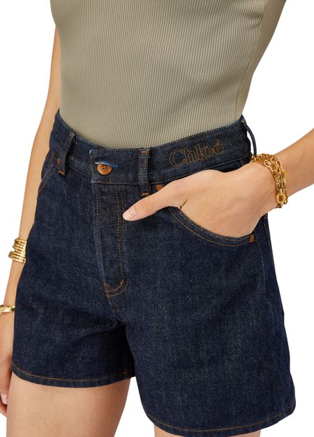Orné à la taille du lettrage Chloé, le short en denim offre une coupe qui épouse la silhouette. Ce modèle à cinq poches va devenir un must de la belle saison.