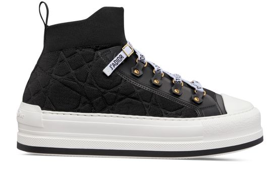 Adoptez les sneakers Dior à plateforme Walk'n'Dior - signatures sur la languette, la semelle et les lacets, plateforme EVA avec étoile, symbole porte-bonheur de Christian Dior.