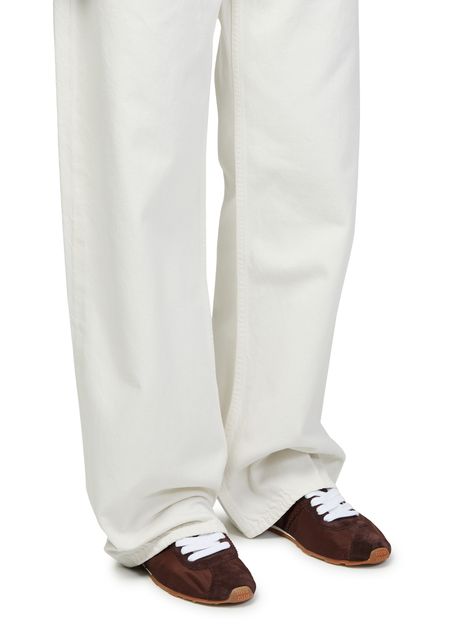 Découvrez les sneakers basses de Miu Miu, dotées d’un bout arrondi fermé et de petits talons pour un style quotidien raffiné. La semelle couleur contrastée et la piqûre visible apportent une touche actuelle, tandis que la texture capitonnée et les logos emblématiques assurent distinction et confort.
