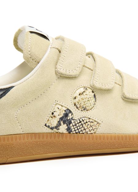 Les sneakers Beth d'Isabel Marant allient confort et style. Avec leur fermeture velcro pratique et leur piqûre visible, elles se distinguent par leur bout arrondi et leurs talons plats. Le logo sur la languette et à l'arrière ajoute une touche d'élégance, parfaite pour une allure décontractée et chic.