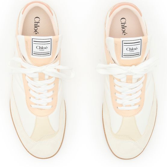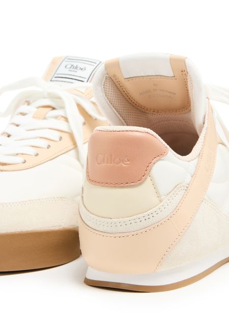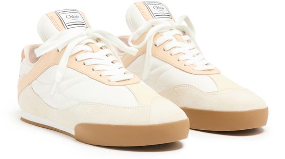 Les sneakers Kick de Chloé allient confort et style. Avec leur bout arrondi et leurs talons plats, elles sont parfaites pour le quotidien. Le logo imprimé sur la languette et le logo appliqué à l'arrière ajoutent une touche distinctive, tandis que la semelle intérieure à logo assure un confort optimal. Une piqûre visible souligne leur élégance.
