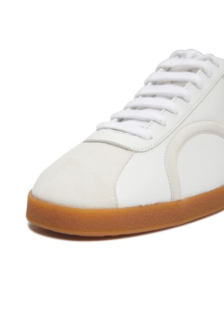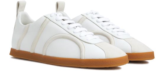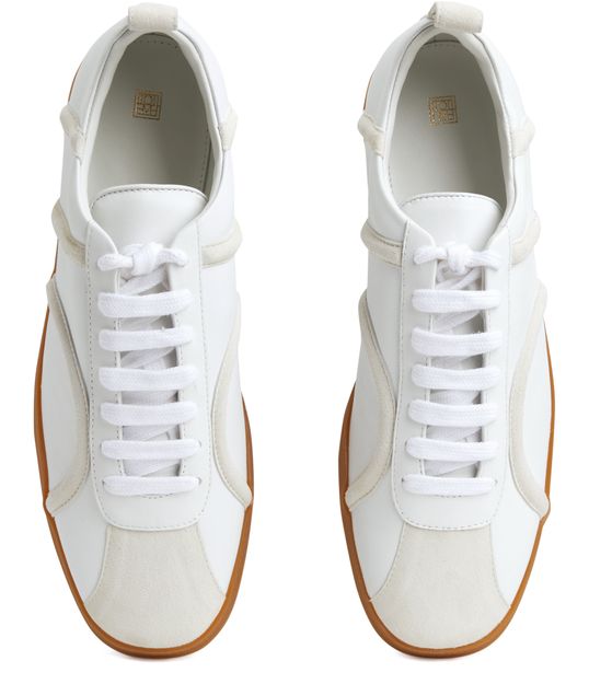Découvrez les baskets Toteme en cuir, un choix parfait pour ajouter une touche chic et décontractée à votre garde-robe. Ces chaussures à lacets se distinguent par leur passant à l'arrière pour un enfilage facile, leurs applications en cuir et leurs coutures apparentes. Avec leur bout carré arrondi et leur semelle couleur contrastée, ces baskets allient style et confort. La semelle intérieure à logo offre une...