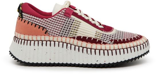 Découvrez les sneakers Nama Chloe, confectionnées en maille ajourée et cuir lisse pour une allure contemporaine. Leur bout arrondi fermé et laçage avec bride assurent maintien et style. La semelle contrastée, les points de feston et le logo à l’arrière signent une silhouette élégante.