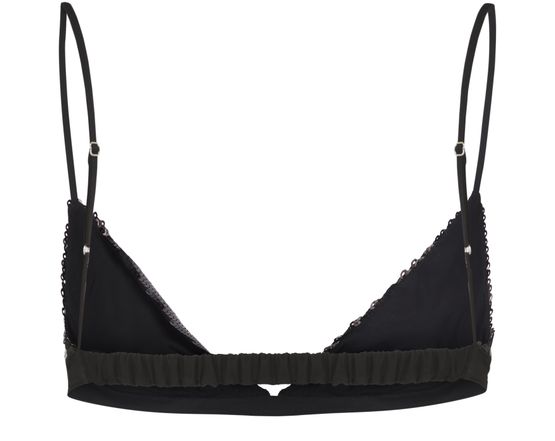 Le soutien-gorge triangle Frida de Khaite est un sous-vêtement sophistiqué et élégant. Doté de fines bretelles réglables et d'un élastique sur l'arrière, il offre un ajustement parfait. Les détails plissés en fronces et la broderie de sequins lui confèrent une touche de glamour, ainsi que des finitions métalliques.