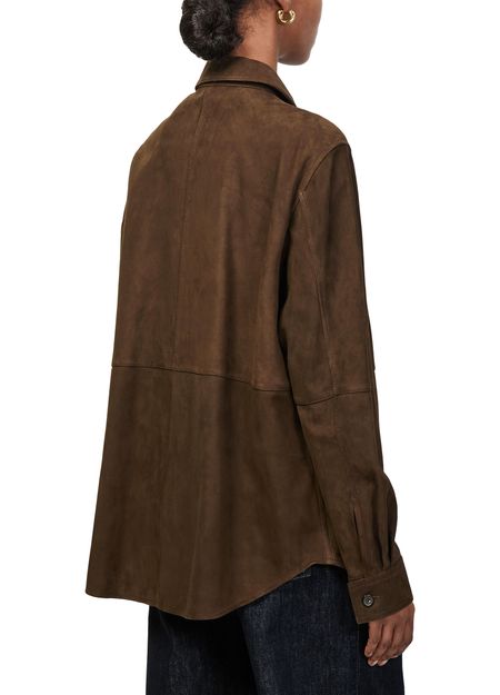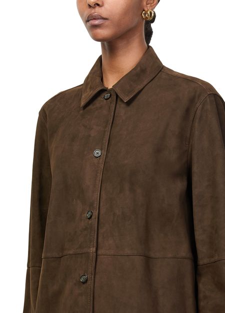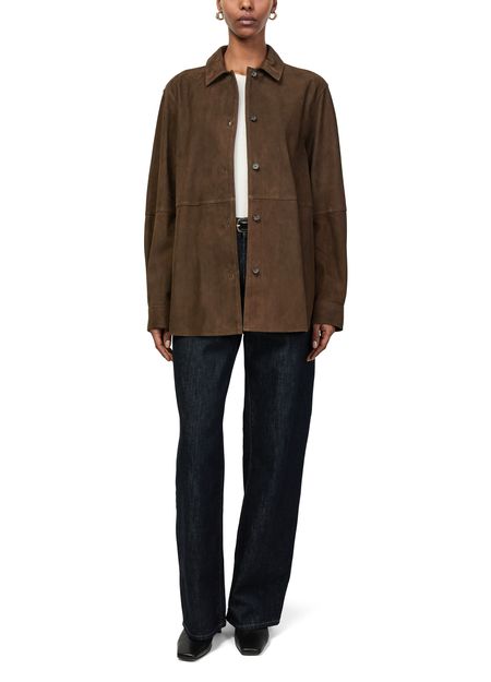 Découvrez la surchemise en daim doux de Toteme, confectionnée en cuir velours pour une allure raffinée. Sa coupe courte à manches longues et sa fermeture à bouton offrent une polyvalence élégante, idéale pour toutes les occasions. Des finitions soignées soulignent son style contemporain.