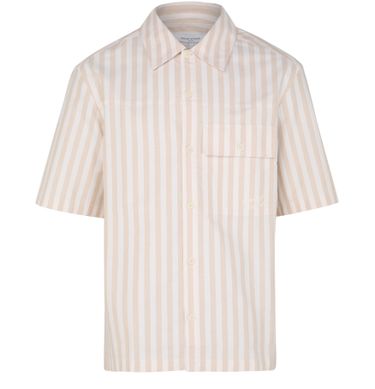 Description : imprimé rayures, boutons sur le devant, visible, logo à l'avant, logo brodé, poches à rabat, poche poitrine, manches courtes, chemises, col chemise.