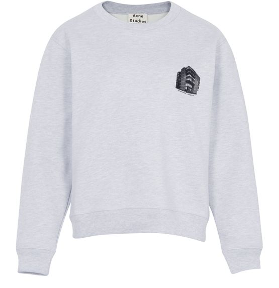 La marque suédoise Acne Studios reprend les codes du sweat des années 90 avec ce sweat fars. Son imprimé building lui donne une touche de modernité.