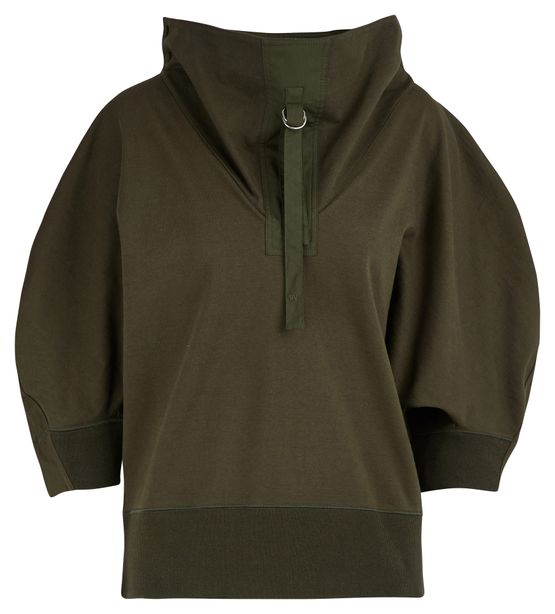 Le raffinement iconique de la maison Bottega Veneta s'associe à un esprit sportswear contemporain sur ce sweatshirt à manches 3/4. Il présente une coupe droite et oversize dans l'air du temps, un col châle ajustable par cordon et des détails en fines côtes. Les manches courtes permettent de porter ce sweat en superposition avec un haut à manches longues, ou en t-shirt, avec un bermuda...