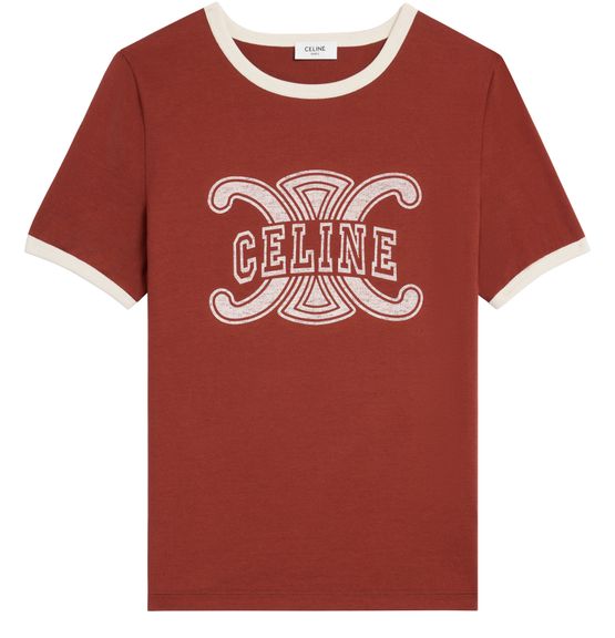 Adoptez le t-shirt 70's en coton de Celine. Doté du célèbre motif Triomphe Celine Paris, il présente une coupe classique et un col rond pour une allure intemporelle. La bordure côtelée contrastante ajoute une touche moderne, faisant de ce t-shirt une pièce polyvalente.