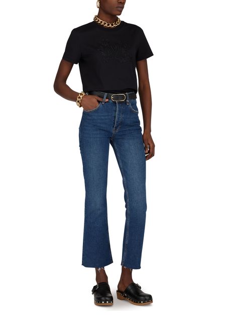 • Description : T-shirt manches courtes, coupe droite, col rond, bords-côtes, logo sur la poitrine.