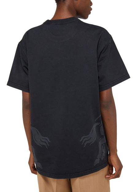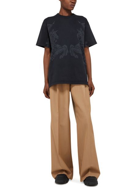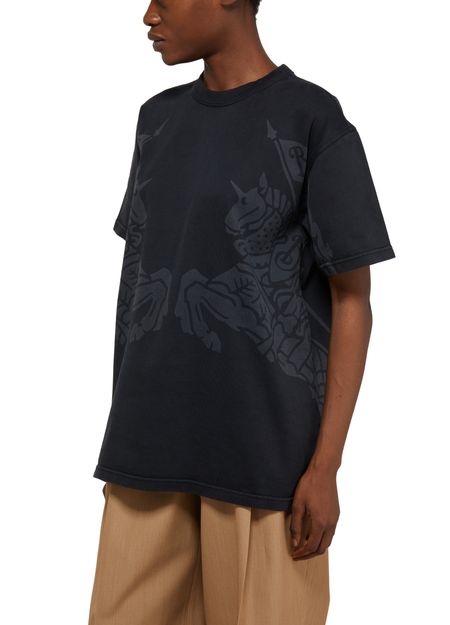 Ce T-shirt Burberry Carrick présente un logo imprimé à l'avant, offrant un style emblématique. Doté d'une encolure ras du cou et de manches courtes, il assure un confort optimal. Une étiquette discrète avec le logo est apposée à l'arrière, ajoutant une touche de sophistication à cette pièce intemporelle.