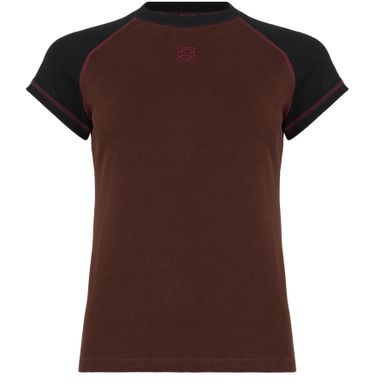Découvrez le t-shirt coupe ajustée de Loewe, une pièce maîtresse du design moderne. Ce top long à imprimé bicolore présente une encolure ras du cou et des manches raglan, offrant une silhouette élégante. Le logo brodé à l'avant et la surpiqûre visible ajoutent une touche de sophistication, parfait pour toute occasion stylée.