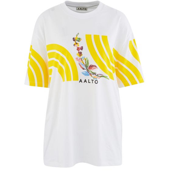Mariant des bandes dynamiques au coloris appuyé à un imprimé floral féminin, le T-shirt en coton signé Aalto est emblématique de l'esthétique non-conformiste de la maison.