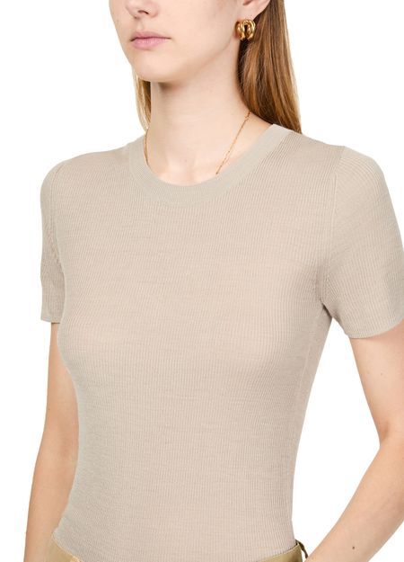 Découvrez le T-shirt en soie Hettie de Nili Lotan, une pièce maîtresse du tricot moderne. Avec sa coupe ajustée et ses bords-côtes, ce modèle à encolure ras du cou et manches courtes est indispensable. Son allure polyvalente s'accorde aussi bien avec des tenues décontractées que formelles, garantissant une élégance assurée.