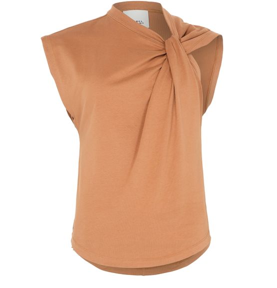 Le t-shirt Nayda d'Isabel Marant est un haut sans manches avec un col en V élégant, parfait pour les journées ensoleillées. Il présente une étiquette avec le logo de la marque à l'arrière, ajoutant une touche de style subtile. Fabriqué avec des matériaux de qualité, ce t-shirt est un indispensable pour une garde-robe estivale tendance.