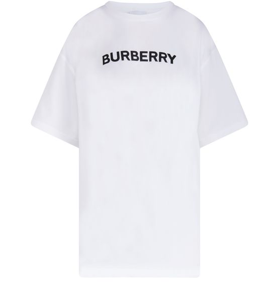 Le T-shirt oversize en coton Burberry, doté d'un col rond classique, affiche un logo distinctif sur la poitrine. Sa coupe ample et fluide met en valeur le confort et la liberté de mouvement, tandis que ses manches courtes ajoutent une touche décontractée. Un choix tendance pour un style casual chic.