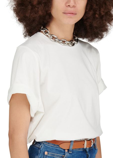 Le T-shirt oversize Toteme est un vêtement immanquable pour votre garde-robe. Il présente des manches courtes, une coupe droite et large ainsi qu'un col rond. Avec son design épuré et sa qualité exceptionnelle, ce T-shirt est à la fois confortable et tendance. Parfait pour compléter vos tenues casual chic.