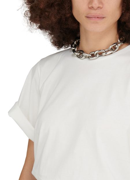 • Description : T-shirt manches courtes, coupe droite et large, col rond.