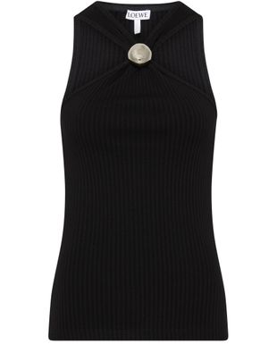 Le top anagramme Loewe Pebble est un vêtement sans manches avec des finitions argentées. Il comporte un col en V et une étiquette avec logo à l'arrière. Son design élégant et sophistiqué en fait un choix parfait pour compléter toute garde-robe.
