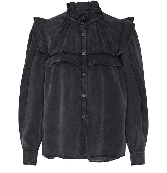 Le chemisier Etoile Isabel Marant séduit par son encolure montante et ses manches longues resserrées. Les boutons sur le devant et la fermeture à bouton lui confèrent un style classique, tandis que les poignets boutonnés ajoutent une note raffinée. L'étiquette avec logo à l'arrière témoigne d'un savoir-faire exceptionnel.