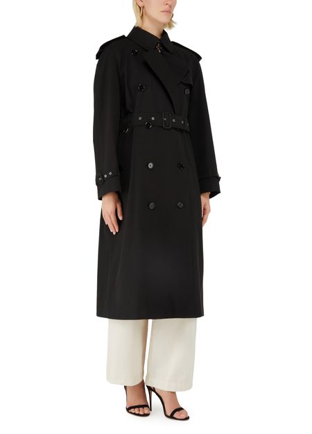 • Description : trench, étiquette avec logo à l’arrière, long, double boutonnage, col, manches longues, poches passepoilées latérales, col cranté.
