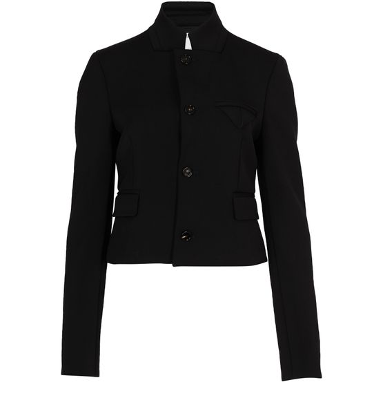 Cette veste à la coupe resserrée est une création tendance de Bottega Veneta. On découvre des finitions modernes, avec le col montant et les poches plaquées à l'avant.