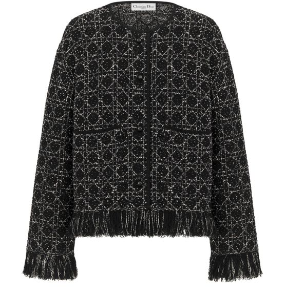 Description : Coupe droite, manches longues, fermeture à boutons Dior Tribales signés CD sur le devant, détails passepoilés noirs, bas et poignets effrangés, sans doublure, nous recommandons d'enlever les accessoires avant le nettoyage, pièce nécessitant beaucoup de précaution. Nettoyage à sec doux.