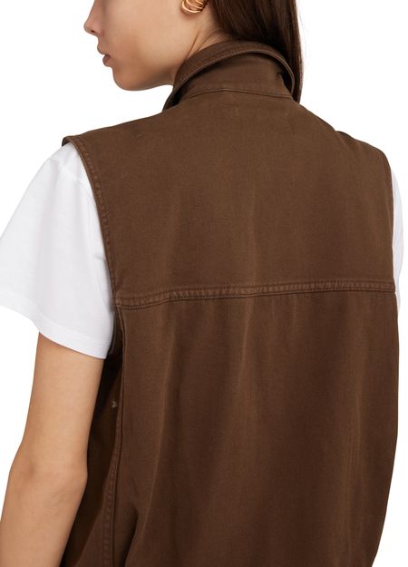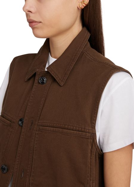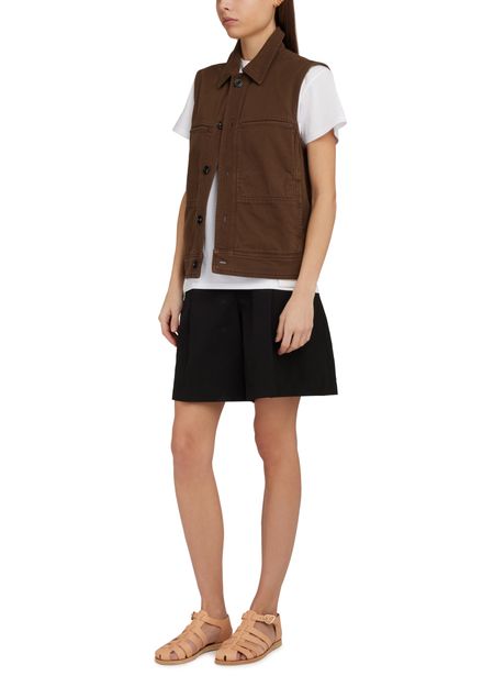 • Description : Matière chaude, col classique, poches poitrine, poches passepoilées latérales, sans manches, boutons sur le devant.