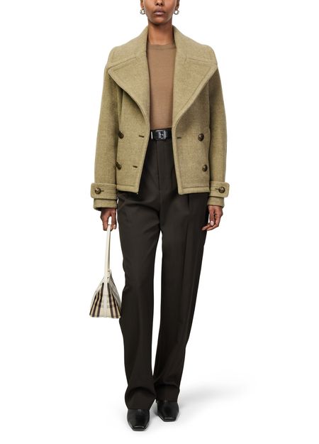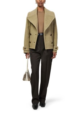 Découvrez la veste en laine Burberry, dotée d'une fermeture à bouton et de manches longues pour une allure élégante. Les poches à rabat passepoilées, les bords surpiqués soulignent son style raffiné. La doublure contrastante complète ce modèle polyvalent.