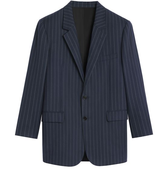 La veste en laine rayée de Celine incarne l'élégance masculine. Sa construction avec plastron léger et épaules accentuées offre une silhouette raffinée. Avec un col droit, une poche poitrine et des poches à rabat, elle allie praticité et style. Fabriquée en Italie, chaque détail souligne un savoir-faire exceptionnel.