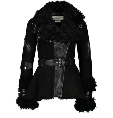 La veste en shearling d'Alexander McQueen mixe les matières et les nuances pour compléter un style vestimentaire original et tendance. L'effet peau d'une teinte poudrée s'affirme avec des découpes et une ceinture en cuir.