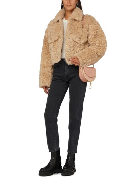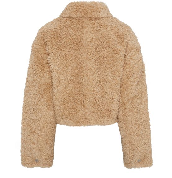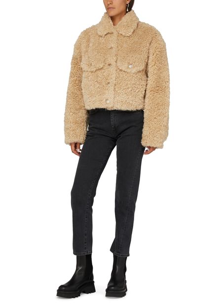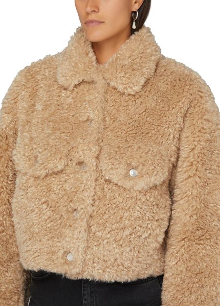 • Description : Veste courte, matière chaude, coupe droite et large, col chemise, manches longues, poches à rabat, fermeture dissimulée.