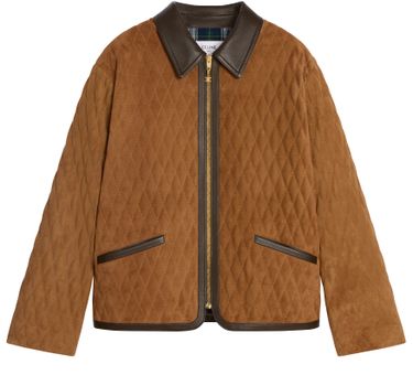 Découvrez la veste matelassée en suède de Celine, une pièce incontournable du style moderne. Avec une coupe ample et un col chemise contrasté, elle offre deux poches passepoilées contrastées et une fermeture zippée ornée du pompon Triomphe. Élégance et style à chaque détail.
