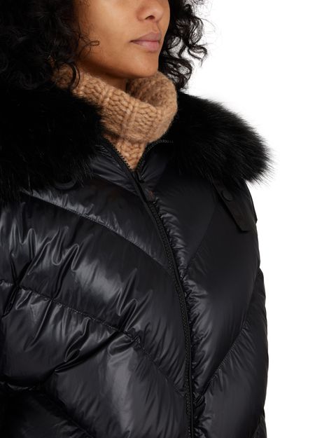 • Description : Coupe slim, col à revers, manches longues, fermeture à glissière, détail fourrure, cordon coulissant à l’ourlet.