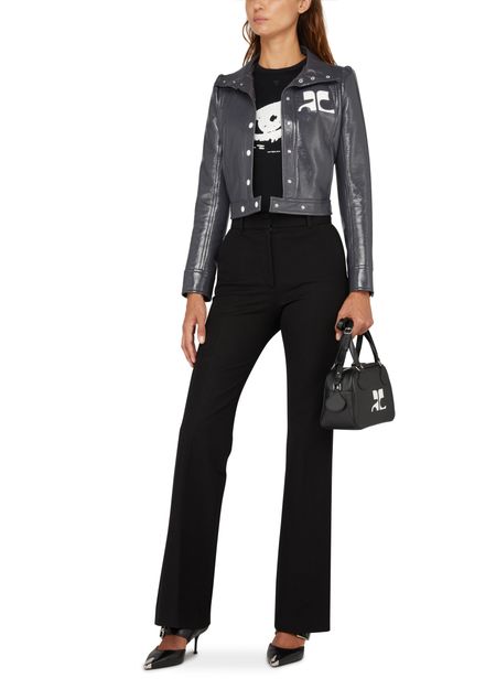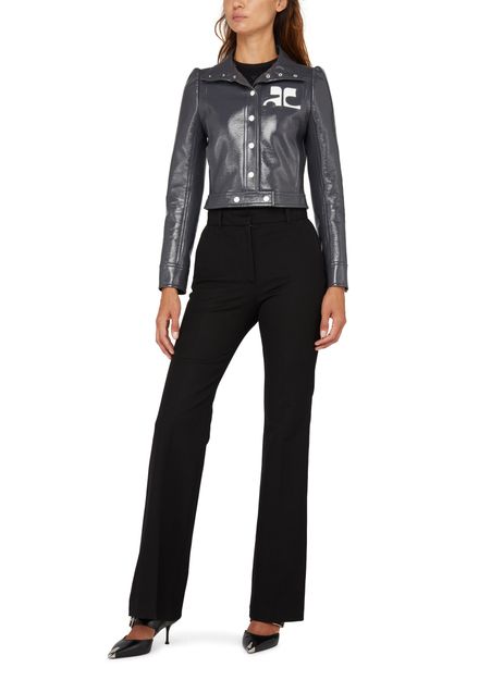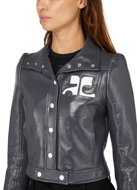 Découvrez la veste iconique Réédition Courreges, confectionnée en vinyle pour une allure contemporaine. Sa coupe courte et sa fermeture à bouton soulignent son style affirmé, tandis que les bords surpiqués et le logo à l'avant signent une pièce versatile, idéale du quotidien aux occasions plus habillées.