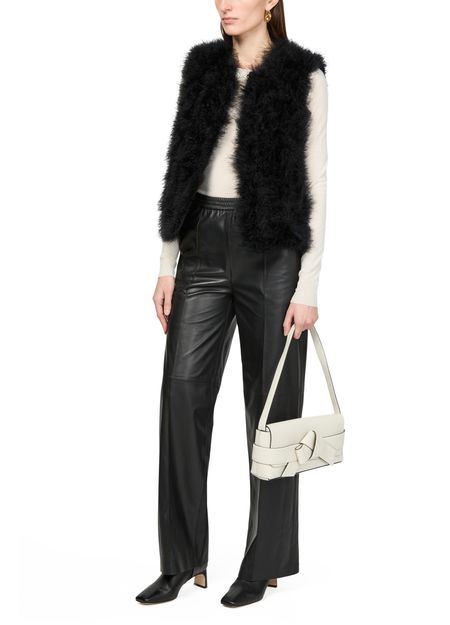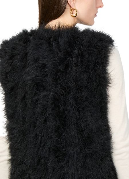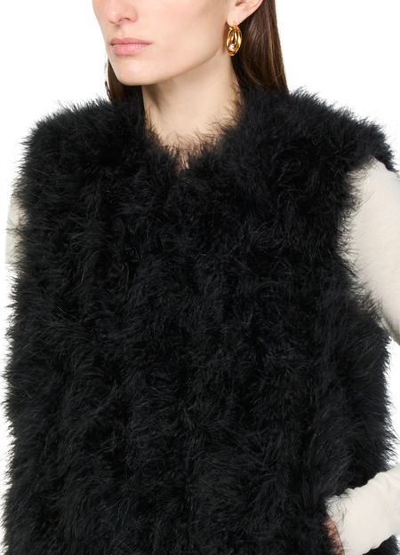 Découvrez le gilet en plumes Yves Salomon, une pièce élégante avec détails en fourrure et un design court et sans manches. Ce modèle sans col incarne l'élégance moderne, idéal pour les sorties décontractées.
