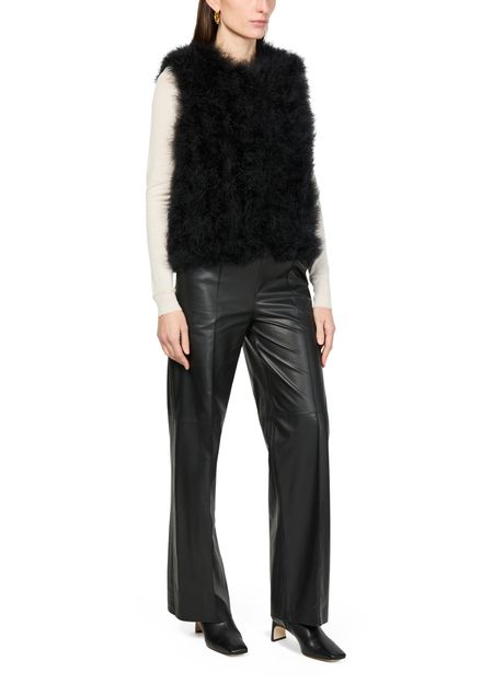 Description : détail fourrure, court, sans col, sans manches, vestes casual.