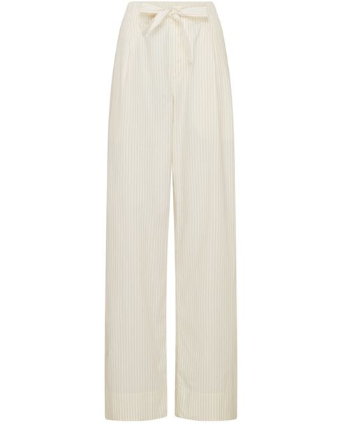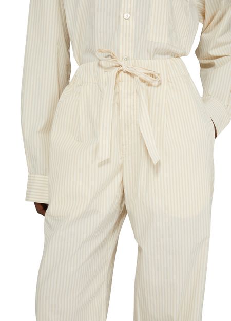 • Description : longueur cheville, imprimé rayures, poche plaquée à l'arrière, pinces à l'avant, ceinture amovible dans la même matière, taille élastique.