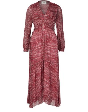 • 説明 : フロントボタン留め, 目に見えるステッチ, マキシドレス, vネック, プリント, 総柄, ロングスリーブ, フレアドレス.