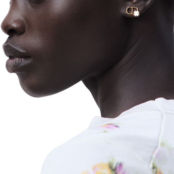 Elevate Dior's CD signature earrings with a sophisticated push clasp design, sold as a pair for timeless elegance.