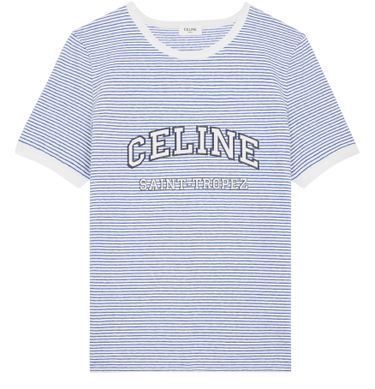 Unveil Celine's 70's t-shirt in striped jersey, embodying a classic fit with a Saint-Tropez print. This crew neck piece features contrasted ribbed trim, delivering timeless style and comfort.