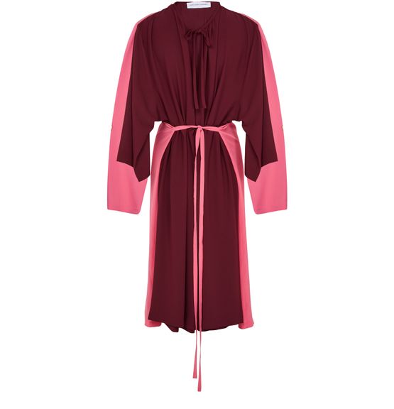 Experience Marie Adam Leenaerdt Chasuble Dress with a chic V-neck and elegant kimono sleeves. The wraparound design, complemented by a bow fastening, ensures a sophisticated silhouette. Ideal for any occasion, this dress exemplifies modern style with a touch of timeless elegance.