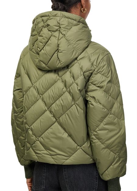 Reveal Burberry's short puffer jacket, a modern silhouette defined by its cropped length and high neck. The padded texture and diamond pattern add dimension, while a zipper closure and side welt pockets offer practicality. A subtle logo on the side completes this versatile piece for any occasion.